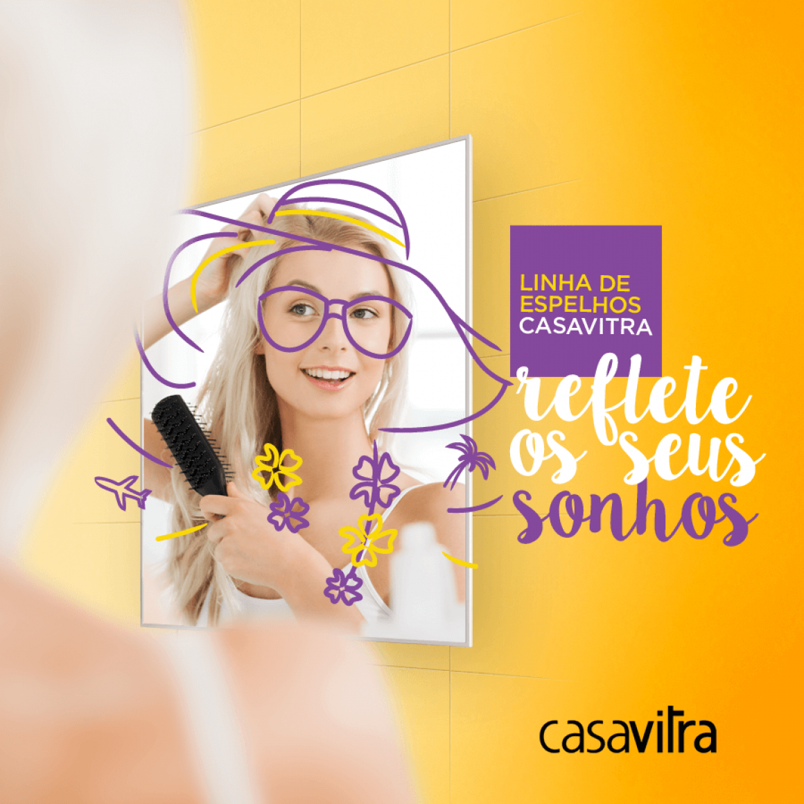 Como dar voz e materializar tudo o que espelhos e prateleiras em vidro podem representar? Esse era o desafio para a construção da campanha de lançamentos dos espelhos e prateleiras em vidro da Casavitra, uma das marcas do Grupo Tecnovidro. Com cor e uma sacada criativa ficou fácil para o consumidor compreender.